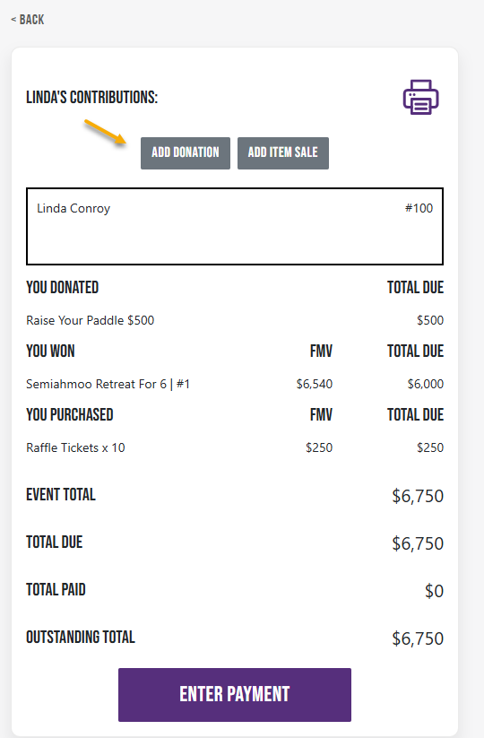You can add donations and item sales directly during checkout from a guest’s statement—no need to return to donation or item setup pages.