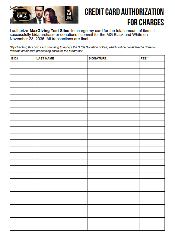Generate a printable authorization form for guests to sign when collecting credit card information offline.
