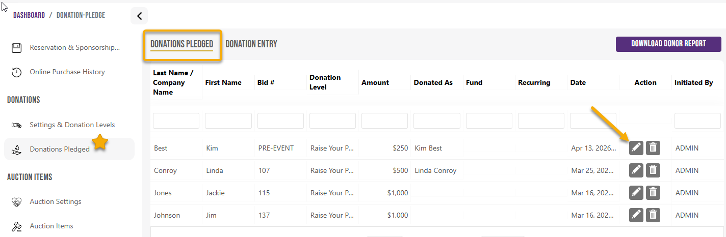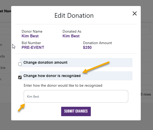 ⚠️ Important: This updates display only—the donation will still be tied to the correct guest record