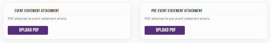 - Click Upload PDF to attach a document to event statement emails